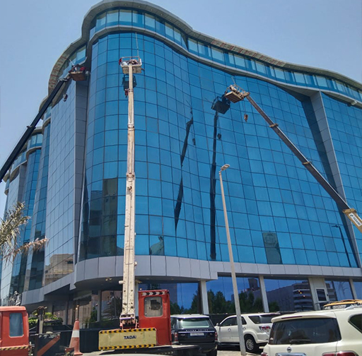 شركة تنظيف واجهات زجاجية خدمة تنظيف دوري للواجهات الزجاجية الأبراج والمباني من اثار تساقط الأمطار والغبار
